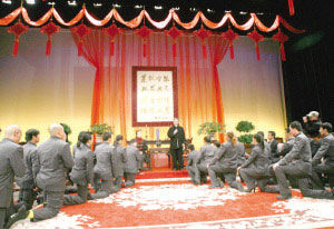 “有點(diǎn)像教主登基,很丑,很封建!”大年初五,“趙本山徒弟大拜師”儀式在本山基地隆重舉行,趙本山攜夫人馬麗娟出席了收徒儀式,35名弟子跪地行拜師禮。這消息像顆炸彈在網(wǎng)上引起軒然大波,輿論幾乎一邊倒。近日,資身網(wǎng)友喬志峰在紅網(wǎng)發(fā)表評(píng)論文章說(shuō),“本山教主”的收徒儀式讓人感到肉麻甚至惡心,知名網(wǎng)友魯國(guó)平在紅網(wǎng)論壇發(fā)文稱(chēng)其很丑陋,是封建腐朽思想的表現(xiàn)。也有網(wǎng)友應(yīng)以?shī)蕵?lè)的心態(tài)來(lái)看待。