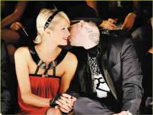 帕麗斯·希爾頓一向是各地時裝表演的?,前日她十指緊扣男友本齊·馬登現身洛杉磯時裝周,出席胞妹妮基·希爾頓2008年秋季新裝秀,帕麗斯先到后臺探班,順道為妹妹打氣。自從與朋克樂隊狂野夏洛特(Good Charlotte)成員本齊·馬登拍拖后,帕麗斯除了打扮變得像個“搖滾烈女”外,其夜夜笙歌的生活習慣卻沒改變。本齊為了陪伴女友,也是晚晚流連夜店,結果卻違反表演合約,并宣布取消上周六的演出,愛情得意但事業(yè)受挫,“我也感到很難過,但誰叫我這么喜歡帕麗斯呢?”