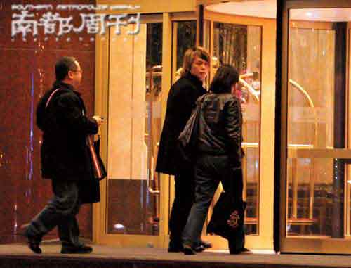 “搖滾詩人”伍佰日前來京,為將于四月中旬舉行的“你是我的花朵”演唱會造勢;蛟S為挽回日漸低落的人氣,伍佰這次全新造型亮相,一頭挑染的金色長發(fā)看上去年輕許多。當(dāng)天所有活動結(jié)束后,伍佰一行乘車到“沸騰魚鄉(xiāng)”吃飯。當(dāng)時正值北京交通高峰時段,車開到離飯店三百多米的地方停下,伍佰先跳下了車,他一邊穿外套,一邊就要穿過馬路。跟在伍佰身后的還有一位身材高挑、面容姣好的三十歲左右女士,手挽一個顯眼大花包。在走到“沸騰魚鄉(xiāng)”三百多米遠的距離里,馬路上來往的行人很多,但沒有人認出伍佰來。伍佰這頓晚飯足足用了兩個多小時,走出飯店時,他仍然表情嚴肅,不茍言笑。隨后在酒店門口,花包女神秘失蹤,只留下那個顯眼花包在伍佰女助手的手里……