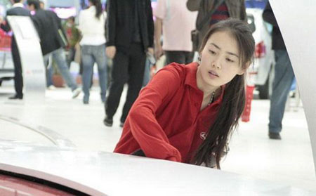 2008北京車展4月23日剛剛落幕,“最美清潔工”迅速走紅網(wǎng)絡(luò)。這位躲在車展角落毫不起眼的清潔工美女,在有心人士的偷拍下,她清秀的素顏照讓眾多濃妝艷抹的車模黯然失色。照片一經(jīng)放到網(wǎng)上就引來網(wǎng)友熱捧。不過,近日此女真實(shí)身份曝光,清秀瘦弱的清潔工美女原是北京現(xiàn)代音樂研修學(xué)院管理專業(yè)的大學(xué)生,真名于洋,還在暑期大片《赤壁》里扮演宮女。一個(gè)藝術(shù)學(xué)院的學(xué)生為什么還要跑到車展當(dāng)清潔工?隨著于洋真實(shí)身份的一步步曝光,這位新晉網(wǎng)絡(luò)紅人遭來越來越多的質(zhì)疑:不僅被指出于洋背后有網(wǎng)絡(luò)推手的高明炒作,甚至昨日也有網(wǎng)友專門撰寫評(píng)論,炮轟這是《赤壁》制片公司的炒作。