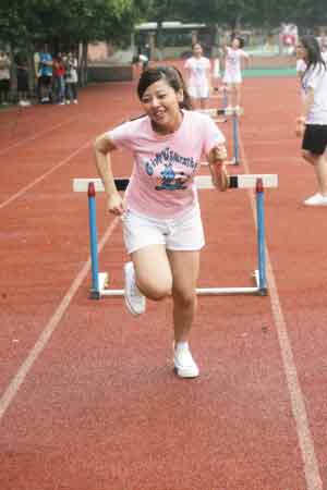 而接下來(lái)的跨欄更是讓人笑彎了腰,除了大牙和小蠻這兩個(gè)身高腿長(zhǎng)的美眉能一跨而過(guò),其他人都是慢吞吞地“走欄”——一腳跨過(guò)去,站定后另一腳才跨,特別是MeiMei,跑步的笨拙姿勢(shì)讓大家大笑不已。而到跳高時(shí),鬼鬼幾乎是連攀帶爬,姿勢(shì)十分狼狽,難得她躍過(guò)后還露出自信的微笑。而筱婕、小蠻和Apple都是雙手?jǐn)偲,企圖正面跳過(guò)去,可是每次都落得個(gè)肚子壓住橫竿的結(jié)局,被黑人揶揄為“狗爬式!