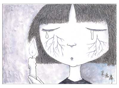 他說:“這兩天我和太太盯著電視上播出的一幕幕災(zāi)區(qū)畫面,兩人不發(fā)一語,腦袋中不斷地冒出各種問號,卻又不知以什么問號問天!币惨虼,他拿起筆后畫出了兩幅作品,“這圖也許有意義也許沒意義,我想我的感受恐怕不及災(zāi)區(qū)朋友們的千萬分之一吧。人雖在臺灣,但心和你們在一起!(記者趙明宇)