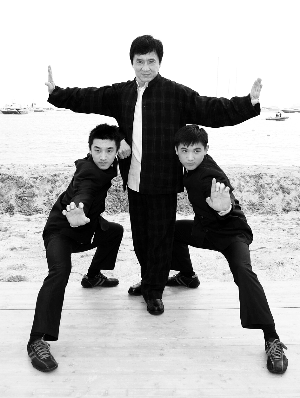 19日,成龍和小將王文杰、劉峰超在戛納大秀拳腳。