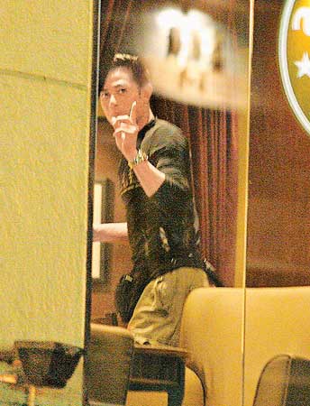 前晚一身便服打扮的城城,駕駛其黑色Benz跑車到咖啡店,泊車后到店內(nèi)買了一杯大號咖啡及一件蛋糕,他瞥見在場有記者遂選坐背窗座位。約10分鐘后城城喝完后起身時面向窗外對記者手指指,然后捧咖啡火速開車返家。