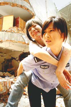 《震撼世界的七日》災(zāi)區(qū)拍攝中 童蕾演警花(圖)
