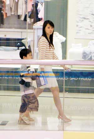 日前,伊能靜主演的新劇《三個女人的秘密》在北京殺青,從片場回到家中的伊能靜顧不上休息,又帶著助理和一個五六歲大的小男孩一起逛商場。伊能靜牽著兒子的手,高昂著頭,表情嚴(yán)肅,先逛了兩家首飾店,她看得很仔細(xì),但小哈利則顯得很不耐煩。后來伊能靜帶著兒子去了幾家兒童玩具店和文具店,最后他們一起來到商場里的一家餐廳吃飯。在伊能靜和兒子逛商場的過程中,雖然不時有人認(rèn)出她來,但沒有人上前去打擾他們,因為伊能靜表情冰冷,步子很快,并不像是一個溫柔體貼的母親,仍然還是一副明星派頭。