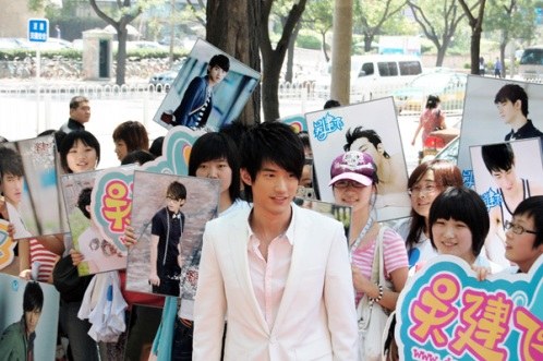 發(fā)布會當(dāng)天,現(xiàn)場人潮攢動,眾多歌迷從外地專程趕來,癡心的小“飛鼠”們穿著統(tǒng)一的會服,高舉著各色的燈牌,一遍又一遍的呼喊著吳建飛的名字,焦急,緊張,期盼的氣氛幾乎讓在場的每個人手心都滲出了汗水,所有人都在期待著今天的主角吳建飛的出現(xiàn)。下午1點(diǎn)半,一輛加長的超豪華林肯轎車突然映入了大家的眼簾,伴隨著一陣陣的驚呼,轎車?yán)镒叱隽艘簧戆咨餮b的吳建飛,站在眾人面前的“新一代歌壇小天王”吳建飛今天化身成為了風(fēng)度翩翩的貴公子,用他特有略帶羞澀的微笑向到場的所有朋友們致謝。