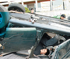 霆鋒每次拍攝電影都十分落力,縱然危險動作亦親自上陣賣命演出,昨日亦不例外,他需要拍攝多個飛車和撞車的場口,還需要在一輛已翻轉(zhuǎn)的車廂內(nèi)倒掛進行拍攝。霆鋒拍攝前不停與導演研究劇情及演法,當看到工作人員未能完全清理地上的玻璃碎,為了避免無謂受傷,他更親自拿起掃帚慢慢將玻璃碎完全清除,之后再戴上護肘才進入車箱試位。