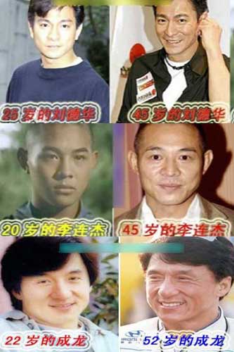 劉德華、李連杰、成龍今昔對(duì)比照片(由上至下)