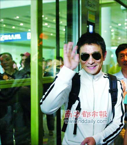 劉德華身著白色T恤,藍色牛仔褲,始終面帶微笑不停向人群揮手致意。可能時間過于緊湊,他并沒有回答任何記者的提問。