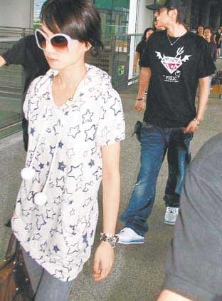 昨午約四時(shí)十五分,羅志祥和蔡依林乘搭同一班飛機(jī)抵港,兩人前后腳由閘口步出離境大堂,戴烏蠅鏡的蔡依林行在前面,戴大黑超的羅志祥則走在后面,表現(xiàn)出紳士風(fēng)度,守護(hù)蔡依林,還有十位保安在旁護(hù)駕,他們發(fā)現(xiàn)記者拍照,即展露高度默契,全程都沒有交流。記者問他們之前是否一齊去日本??jī)扇硕紱]回答。