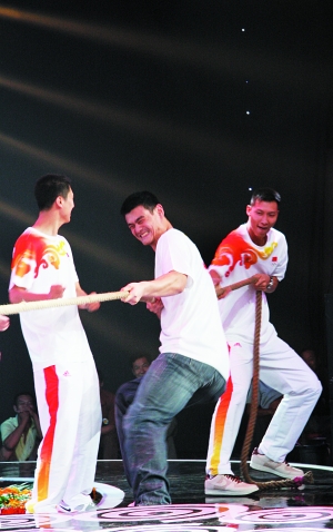 姚明易建聯(lián)參加拔河比賽。