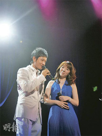 黃曉明與岡本真夜合唱《新上海灘》片尾曲《就算沒有明天》。來(lái)源:香港《明報(bào)》