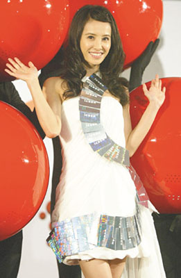配合代言活動(dòng),她昨天穿的一件禮服,被歌迷以超商儲(chǔ)值卡10500點(diǎn)標(biāo)走。事實(shí)上,她的歌曲“舞娘”、“Love Love Love”因在奧運(yùn)會(huì)場上放送,意外被歐洲注意到,因而進(jìn)入排行榜,她先前又進(jìn)入英國某雜志AskMen網(wǎng)站Top99位女星排行榜,影響力被形容為“喊水會(huì)結(jié)凍”,而宣稱中文不好的她,果然聽不懂。