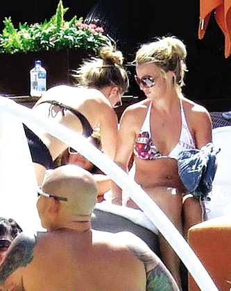 上周日,布蘭妮亮相度假村內(nèi)的游泳池邊,享受周末午后時(shí)光。身穿性感比基尼的她依舊是粗腰肥臀,身材無(wú)改善,兩位身材健碩的保鏢如影隨形地保護(hù)她的安全。