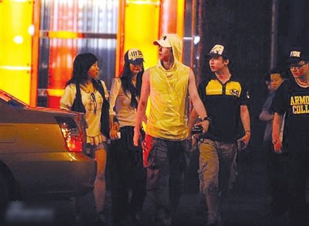 凌晨兩點(diǎn)左右,韓庚一群人先后走出了飯店,雖然已經(jīng)夜深人靜,但韓庚卻還是小心翼翼,甚至把滑雪衫的帽子也罩在了頭上,造型看上去有點(diǎn)滑稽。第一次盯拍韓庚,記者覺得他在外出時比王菲那些大腕顯得還要謹(jǐn)慎小心,真應(yīng)了那句俗話——“人怕出名豬怕壯”。