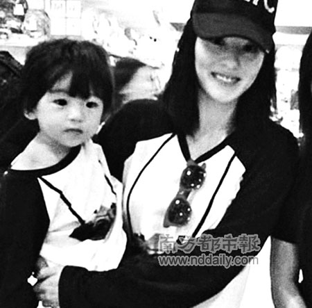 9月16日 張柏芝穿著長袖抱著Lucas逛街,皮膚光滑。