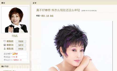 10月13日凌晨,57歲的劉曉慶用一篇博文《對不起,我怎么現(xiàn)在還這么年輕》回應(yīng)整容傳聞,再三強調(diào)自己是“純天然”容貌。她在博客中說:自己現(xiàn)在仍然這么年輕健康、充滿活力、陽光燦爛,好像挺對不起大家似的。