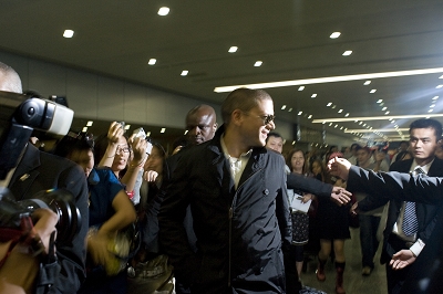 這次米勒上海之行吸引了近30家媒體到機(jī)場接機(jī),在接機(jī)過程中,媒體意外接到了郭富城和王力宏。郭富城為了避免媒體追問他和熊黛林的緋聞,提前要求上海演出方安排走貴賓通道。這讓郭富城意外避過了媒體的“追訪”。而王力宏則完全是在狀況之外,他一走出出境口,就被一擁而上的媒體驚到。當(dāng)時王力宏整個人愣了一下,不自覺地往后退,隨即低著頭避開鏡頭。讓王力宏更加納悶的是有媒體記者問他是否看過《越獄》,不知情的王力宏并沒有回答。