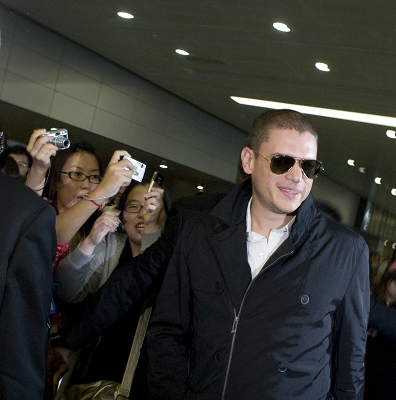 擁有8國血統(tǒng)的溫特沃斯·米勒,因主演美劇《越獄》一炮而紅,更被影迷們親切地稱為“米帥”。昨天傍晚,他乘坐美聯(lián)航UA857航班抵達(dá)上海,為今明兩天在上海舉行的ME&CITY上市發(fā)布會宣傳造勢。米帥首次上海之行,選擇了“親民”路線,在機(jī)場走普通通道,還對粉絲很貼心,更是為粉絲當(dāng)拍照“背景板”。