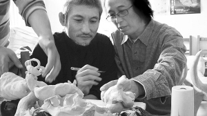 記者為了給這些瓷雕拍照,用手端了幾件,挪了挪地方,不料手印便留在那些尚未風(fēng)干的泥坯上。朱樂耕笑道:“燒出來以后,你的指紋和徐克的雕塑將共享不朽!