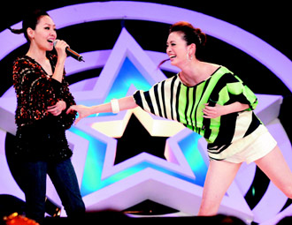 小S(左)頂班主持“星光大道”,評審劉真(右)想拉她一起秀舞蹈遭拒。