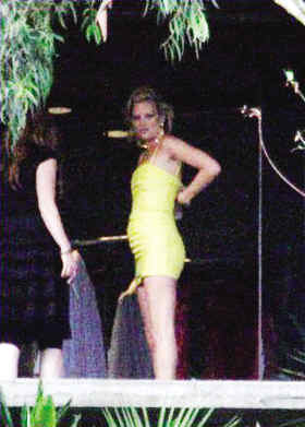 英國超模凱特·摩絲上周六在洛杉磯拍時裝照,穿著黃色連衣裙的她在沒有放下簾子的落地大玻璃前更衣,結果被狗仔隊拍下整個換衣過程,照片中可見一名女更衣助理及發(fā)型師等同場。凱特·摩絲脫裙子時,因沒有穿內衣,三點盡露。有八卦網(wǎng)站還幸災樂禍地說照片中的她肚子有贅肉,需要減肥。