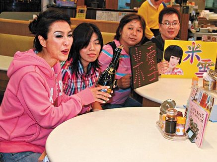換上便服的米雪,與fans到茶餐廳食消夜。