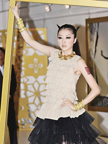 熊黛林“魔女”形象展示金飾品。香港《明報(bào)》圖