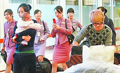 因他接下來到農(nóng)歷春節(jié)前,都要為新專輯留在臺(tái)灣籌備,一直希望全家人能團(tuán)聚的他,索性將老婆、兒子都接來臺(tái)灣陪伴,近4個(gè)月大的Joe昨首度搭機(jī),不太哭鬧,但因嬰兒推車、衣服、奶瓶等育兒用品多,曹格昨說:“光他的東西就3個(gè)行李箱,我一個(gè)人推,好重耶!”