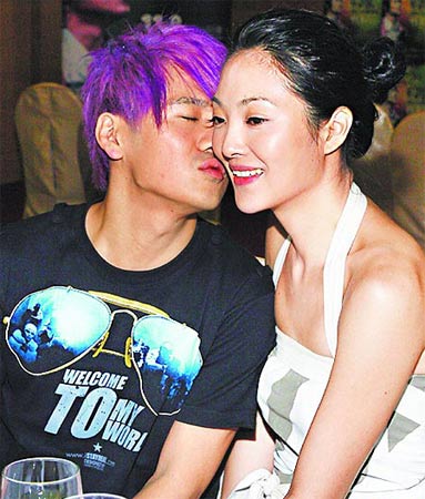 曹格(左)上月臺(tái)北演唱會(huì)結(jié)束慶功,親吻妻子吳速玲。