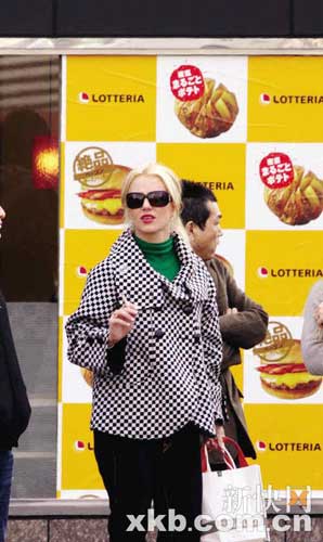 在保鏢和助理的陪同下,布蘭妮花了一個(gè)上午的時(shí)間,在東京著名的原宿(Harajuku)購(gòu)物大血拼。她身穿一件塔形的黑白格上衣,也因此顯得腹部高隆,很是令人生疑。也許她自認(rèn)在東京并無(wú)人認(rèn)識(shí),于是暢快地吸著煙,還先后去了某家以“盜版”知名品牌出名的平價(jià)服裝店以及日式的麥當(dāng)勞—— LOTTERIA快餐店。此行,也許讓這位27歲的瘋狂女王再次暢快地玩了一回。