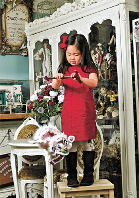 中新網(wǎng)2月2日電 鐘鎮(zhèn)濤(阿B)女友范姜為了令女兒鐘懿多學(xué)一點中國傳統(tǒng)文化,早前趁春節(jié)兩母女一起炮制紙黏土牛牛公仔,不過耐心的范姜和好動的女兒,合拍程度有待改善。范姜說現(xiàn)年4歲的鐘懿,在新春只學(xué)會當(dāng)場拆紅包及魚蝦蟹,不過在年初一也會跟哥哥姐姐一起跪地斟茶給長輩。