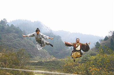 在“丐幫聚會(huì)大廳”的一場(chǎng)戲中,張無忌獨(dú)闖丐幫,一人力敵丐幫數(shù)名高手。這場(chǎng)戲要求鄧超完成一整套武打動(dòng)作并要一氣呵成將圍在他身邊的高手們打翻在地。為了拍好這場(chǎng)戲,鄧超向劇組中的武行師傅們討教了不少武打秘訣。