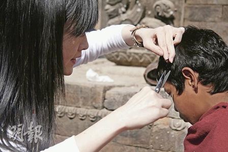 中新網(wǎng)2月10日電 據(jù)香港《明報》報道,“饑餓之星”周慧敏、蔡卓妍與張敬軒探訪尼泊爾貧窮村莊,了解當(dāng)?shù)丶彝サ纳顮顩r!澳咛敝芑勖魫坌谋,她與孩子相處母愛大發(fā),親自為她助養(yǎng)的孩子剪頭發(fā)。