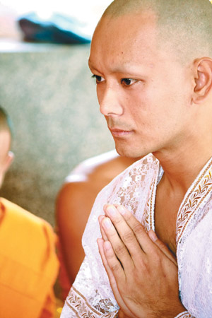 這15天中,Tae每天早上4點(diǎn)半起床念經(jīng),然后光腳到附近住家拿取米飯回寺廟,再到民宅念經(jīng)祈福。他在寺廟中沒有姓名也沒有階級(jí),日日跟著師父誦經(jīng)、打坐,他說(shuō):“我選在一個(gè)很偏僻的廟中出家,山上很冷,頂著光頭常讓我發(fā)抖,但因?yàn)檫@段時(shí)間我日日伴佛,心情變得很平靜!