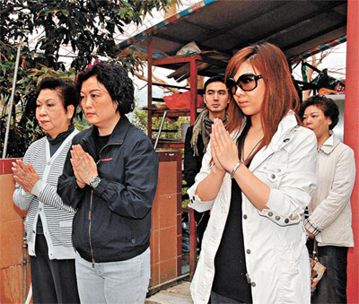 香港媒體報(bào)道,昨日是肥姐的死忌,其女鄭欣宜到沙田寶福山拜祭。肥姐生前好友張徹太太、劉雅麗媽媽曉華姐、欣宜經(jīng)理人陳淑芬等,昨早9時(shí)抵達(dá)寶福山,到肥姐靈位前打點(diǎn)一切。一身素服、戴上黑色太陽(yáng)鏡的欣宜在9時(shí)45分現(xiàn)身,她拿著兩大束肥姐生前酷愛(ài)的百合和黃玫瑰,趕往會(huì)合正在寶福山寶禪堂打點(diǎn)一切的張徹太太等人。
