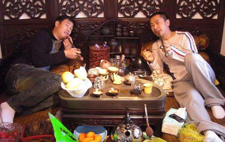前段時間,有媒體曝光了一組小沈陽與哈爾濱好兄弟姜鵬的親密合影照,兩人臉貼臉、肢體似曖昧。姜鵬解釋稱,這是小沈陽去年生日的合影。近日,又一組有關(guān)姜鵬和小沈陽的合影被曝光,二人在一間仿古的老房子土炕上,圍著圓桌半躺著,手里拿著大煙袋,擺出休閑自在之態(tài)。