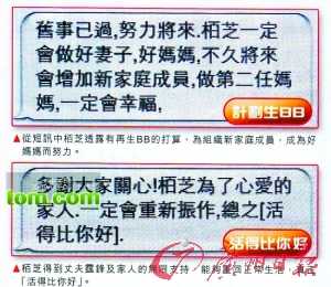 張柏芝在短信中暗示自己從來沒有退出并有意重返娛樂圈工作,更表示“一定會(huì)一家幸?鞓贰保踔亮粞浴芭f事已過,努力將來,柏芝一定會(huì)做好妻子、好媽媽,不久將來會(huì)增加新家庭成員,一定會(huì)幸!。
