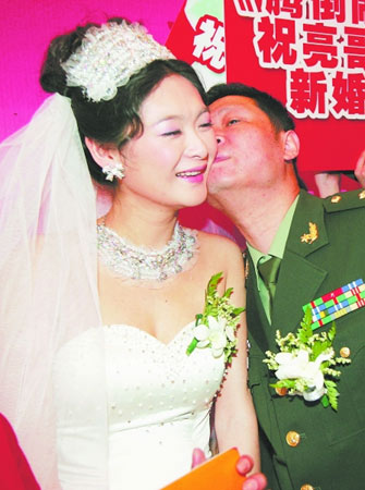張國立等明星送上真誠的祝福;羌族村民獻上祝酒歌;鐵桿影迷前來道賀……昨日中午,因“毛子”“三德子”形象紅遍全國的川籍著名演員趙亮在成都大擺喜宴,迎娶新娘胡敬。擺足了87桌喜酒的婚禮現(xiàn)場熱鬧非凡。一對新人在互贈戒指的環(huán)節(jié)中眼眶紅紅,趙亮更發(fā)表愛的宣言:“這下我們雙方就套住了,永遠套牢,永不分開!”
