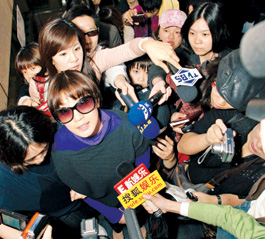 賈靜雯昨天乘坐最早一班從臺(tái)北桃園機(jī)場直航浦東的飛機(jī)于上午11點(diǎn)準(zhǔn)時(shí)抵滬,大批上海、臺(tái)灣的媒體早已在機(jī)場等候。隨著旅客漸漸走出,卻遲遲未見賈靜雯的身影,一位空姐一語道破:“我剛才看到她往那邊的VIP通道走了!鳖D時(shí)引起媒體的緊張,怕賈靜雯再度上演美國酒店和媒體“躲貓貓”的戲法。