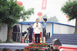 前天上午,為了讓更多的災(zāi)區(qū)人民以及援建志愿者看到演出,“心連心”藝術(shù)團(tuán)專門派出兩支小分隊(duì)赴德陽(yáng)東汽新址以及北川擂鼓鎮(zhèn)舉行分會(huì)場(chǎng)表演,而昨天上午,主會(huì)場(chǎng)的演出則在綿竹上演,上萬(wàn)觀眾觀看了演出。而央視著名主持人趙忠祥、畢福劍、徐俐、韓喬生、李瑞英、王小丫、鞠萍、馬東、朱迅等名嘴擔(dān)綱主持并反串了精彩節(jié)目。孫悅、韓磊、湯燦、張邁、陳小濤等近百位明星為災(zāi)區(qū)群眾獻(xiàn)藝。這樣的陣容的確如之前報(bào)道的一樣,“超過春晚”。許多災(zāi)區(qū)群眾感動(dòng)地說:“央視心連心藝術(shù)團(tuán),在地震周年到災(zāi)區(qū)演出,確實(shí)把溫暖送到了我們心里,讓我們對(duì)重建家園更有信心”。