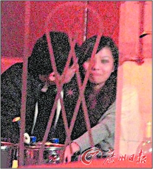 5月8日晚上9時(shí),呂方帶領(lǐng)三名男友人,往灣仔區(qū)一間只招待熟客的高級(jí)卡拉OK消遣,眾人來到VIP房,10分鐘后兩名年輕貌美,年約20歲的少女入內(nèi),呂方對(duì)一名眼睛大大下巴尖尖,笑容極甜、貌似蔡少芬的小姐特別喜歡,兩人邊唱歌邊喝酒,呂方還興奮地叫了一支2000元的威士忌跟小姐慢慢喝。酒過三巡,呂方與美女愈坐愈近,更唱情歌討好美女,又不時(shí)跟女方耳語(見右圖)?窆嗤考、香檳及啤酒后,跟小姐愈玩愈癲的呂方,竟突然抱起小姐又?jǐn)堄钟H,難得小姐非常樂意,任他熊抱兼吻面,呂方更蒙起雙眼,陶醉得久久不能張開。