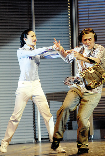 對(duì)策:在一年一度的公司評(píng)估會(huì)上,拉拉認(rèn)清事實(shí),選擇與玫瑰正面PK。她運(yùn)用SWOT分析法[SWOT是一種分析方法,用來確定企業(yè)或自身的競(jìng)爭(zhēng)優(yōu)勢(shì)(strength)、競(jìng)爭(zhēng)劣勢(shì)(weakness)、機(jī)會(huì)(opportunity)和威脅(threat),從而采取的具體戰(zhàn)略與策略。]得到上司的信任,最后把玫瑰趕出公司。話劇通過歌舞的形式體現(xiàn)了二人的明爭(zhēng)暗斗。