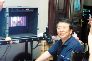 在和司徒雷登的對話中,王學(xué)圻扮演李宗仁身著國民黨軍裝,同時還戴上了墨鏡。王學(xué)圻告訴記者:“因為我在上海拍《十月圍城》,里面的角色是光頭的,剃頭之后為了不穿幫,拍攝這部戲只能戴帽子再戴墨鏡,分散一下注意力!