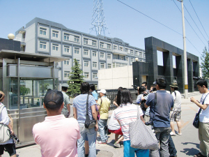 2日晚10時,在朝陽北路北京市公安局朝陽分局看守所和拘留所的大院門外的輔路上,已經(jīng)停滿了新聞記者的車輛,30余名記者手持照相機或攝像機已經(jīng)在門外苦苦等候。昨日早晨7時,陸續(xù)又有數(shù)名記者趕到朝陽看守所大門口參與蹲守。