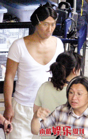 在《十月圍城》中,黎明放下天王巨星的架子,扮演一名乞丐,也是“六義士”之一。乞丐已經(jīng)是一個夠倒霉的角色了,沒想到片場休息,黎明把假發(fā)一梳弄,竟成了驚世駭俗的天王級“如花”,不過據(jù)說扮丑很容易拿影帝,黎明顯然是下定決心不怕犧牲了,剛剛出演過梅蘭芳的粉面就直接被化妝師糟蹋成黑臉,還特別給這位沒錢理發(fā)的乞丐先生留了一頭換七八糟的長發(fā)。長發(fā)未免有點(diǎn)熱,黎天王倒也挺能應(yīng)付,脫了戲服穿件“老頭衫”,還用兩個發(fā)卡把頭發(fā)梳弄上去,有利散熱。攝影師的長鏡頭在片場找了很久,才終于在導(dǎo)演棚里找到了“黎如花”。