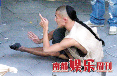 謝霆鋒在片中是一個拉黃包車的“車夫”,“六義士”之一。他在片場表現(xiàn)極其活躍,不僅主動找人“挑戰(zhàn)”,還積極練功,一絲也不懈怠。自從結婚生孩子后,謝霆鋒就自作主張轉(zhuǎn)型成“動作演員”了,每部戲就力求從頭打到尾。動作戲,時間短,片酬高,誰都愛接(詳情請參閱本期重點)。問題是謝霆鋒原本是個摔吉他的,現(xiàn)在換了要打架摔跤,基礎略有些薄弱。為此謝霆鋒一直孜孜不倦,努力學習,在片場看見熟悉的武行就要和對方“套招”,大家都不理他了,他還一個人玩起撐地踢腿。通過努力鍛煉,謝霆鋒的功夫的確見長。