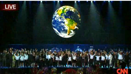追思會的尾聲,在場的所有明星與杰克遜的家人一起上臺合唱其生前的知名歌曲《We are the world》與《Heal the world》。最后杰克遜靈柩在親友的護送下離開會場,象征流行巨星杰克遜的時代正式劃下句點。