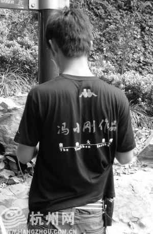 果然,連從資嚴(yán)慧院走出來的工作人員,不少都穿的是這個品牌的圓領(lǐng)T恤,后背上還印有“馮小剛作品 唐山大地震”等字樣。